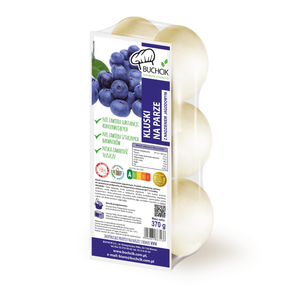 Ten popularny w naszym kraju produkt zwany jest również w różnych regionach: pampuchami, parowańcami czy buchtami.Tę wersję wzbogaciliśmy o pełne smaku i aromatyczne nadzienie jagodowe.